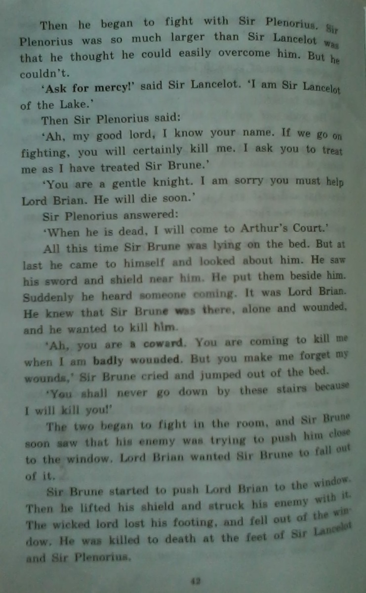7. Sir Plenorius badly wounded Sir Brian but didn't kill him