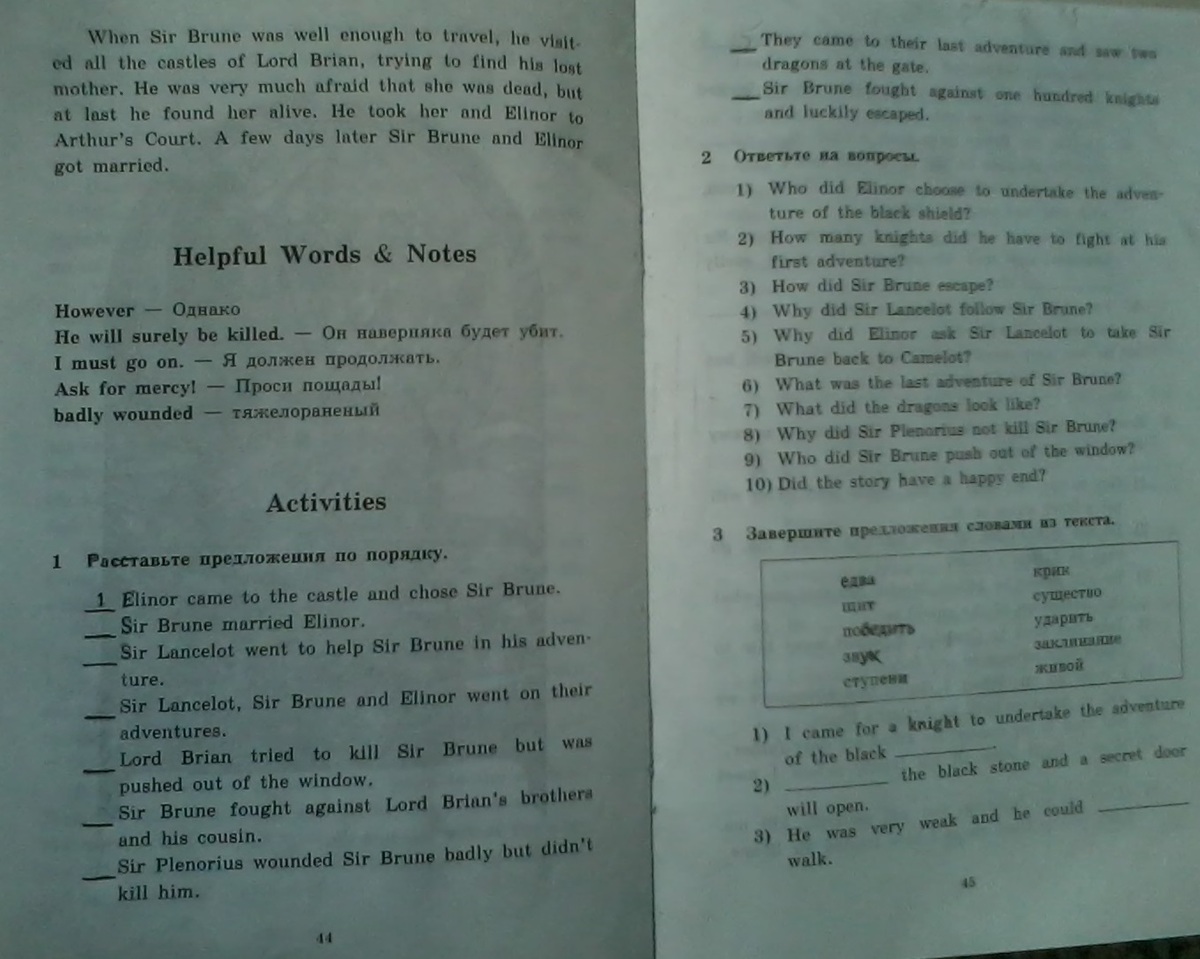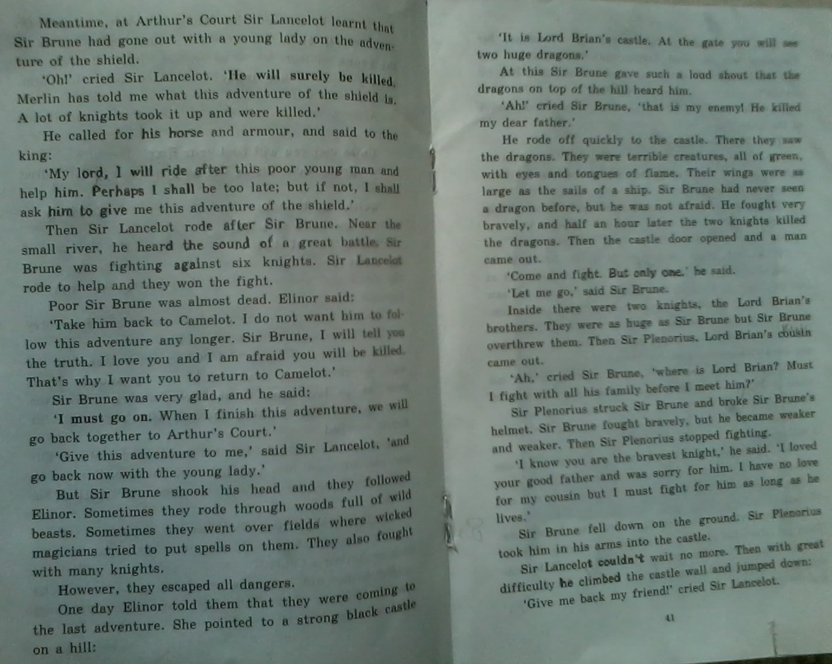 4. Sir Lancelot, Sir Brune and Elinor went on their adventures.