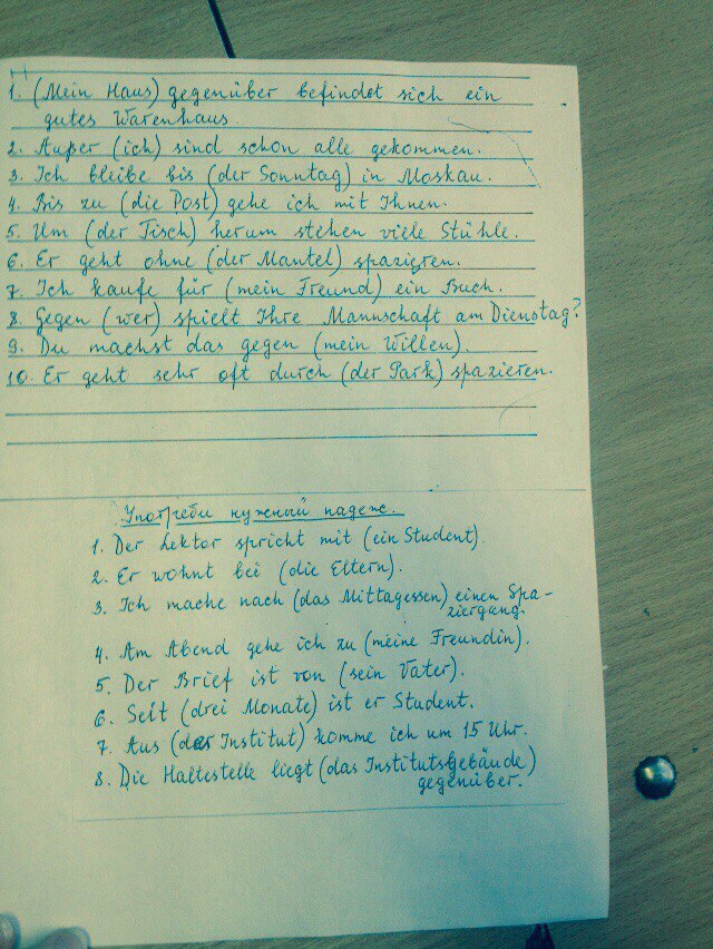 Пожалуйста.Помогите с немецким.От этого задания зависит оценка за триместр.(Второй листочек делать только с низу)