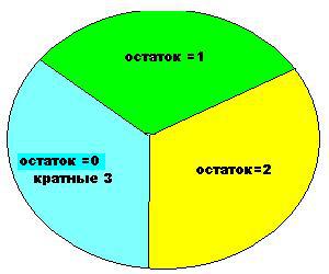 А - кратные 3-м и остаток равен 0. и два других - Б - с остатком = 2 и В - с остатком = 1. Они НЕ ПЕРЕСЕКАЮТСЯ.