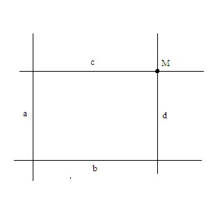 Проведите две взаимно перпендикулярные прямые а и b. Отметьте точку М, не принадлежащую этим прямым. Через эту точку проведите прямые c и d, перпендикулярные прямым а и b.
