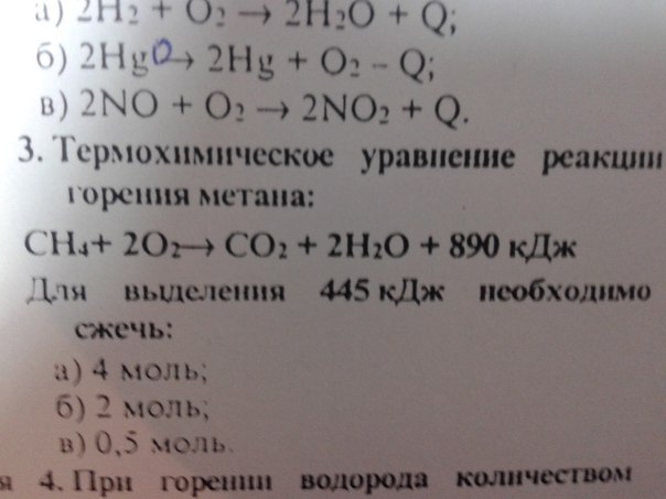 Соответственно, для выделения 445 кДж понадобится в два раза меньше метана: 445/890 = 0,5 моль.