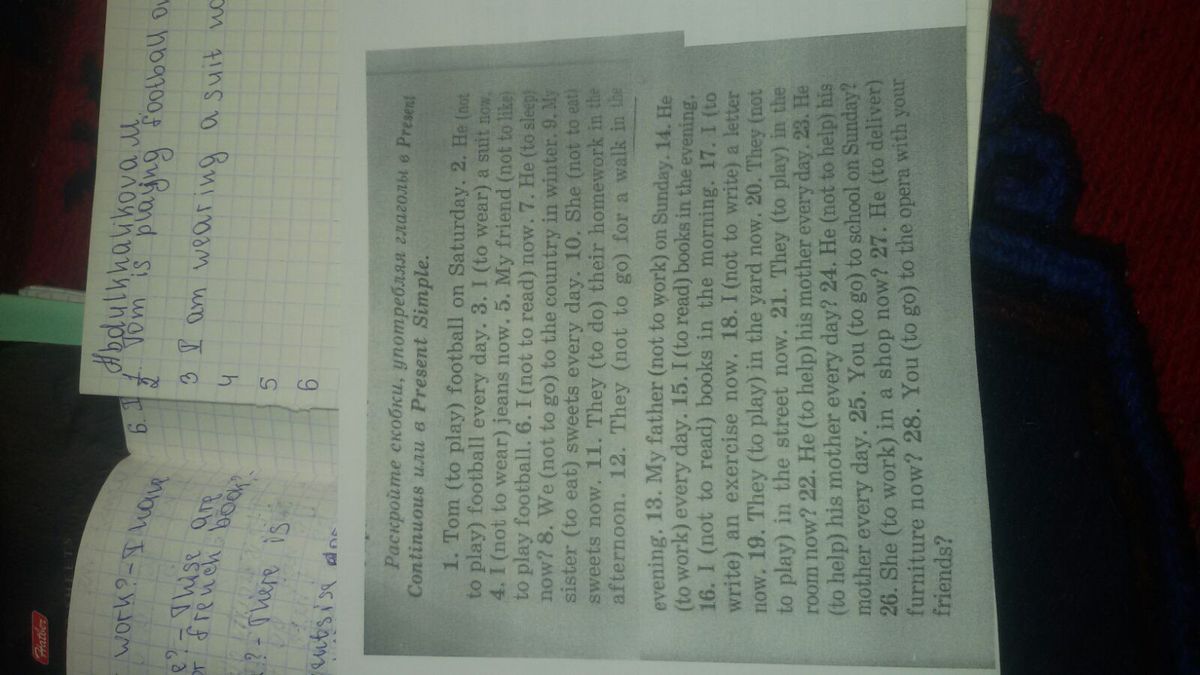 Plays; Doesn't play; I am wearing; I am not wearing; Doesn't like; I am not reading; Is sleeping; Don't go; Eats; Is not eating; Do; Don't go; Doesn't work; Works; Read; Don't read; I am writing; I am not writing; Are playing; Aren't playing; Are playing; Helps; Helps; Doesn't help; Go; Is working; Is delivering; Go