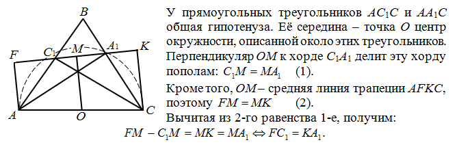 В остроугольном треугольнике ABC проведены высоты AA1 и CC1. Из точек A и C на прямую A1C1 проведены перпендикуляры AF и СК. Доказать,что FC1=KA1