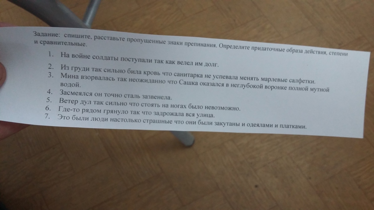 2.Из груди так сильно била кровь,что санитарка не успевала менять марлевые салфетки. (придат.степени)