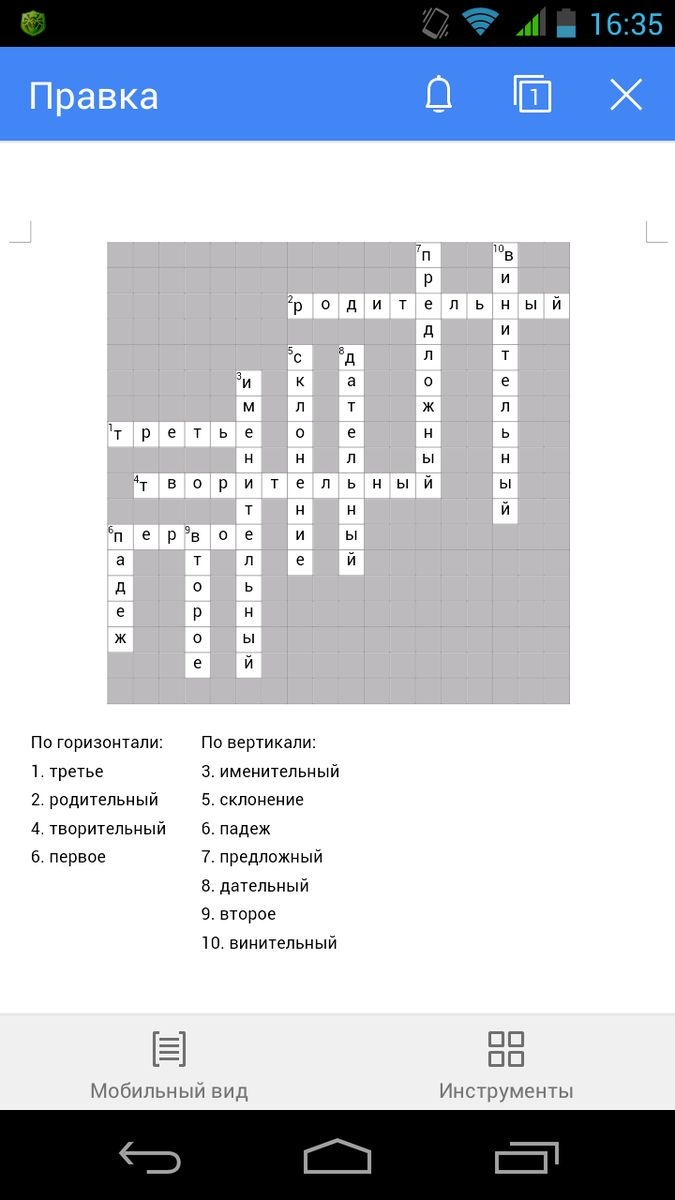 Посмотри кроссворд во вложенном файле