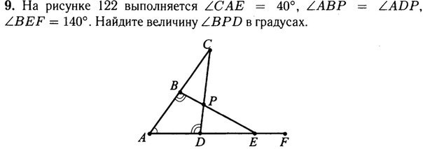 ∠ВPD = 360 - 100 - 100 - 40 = 120°