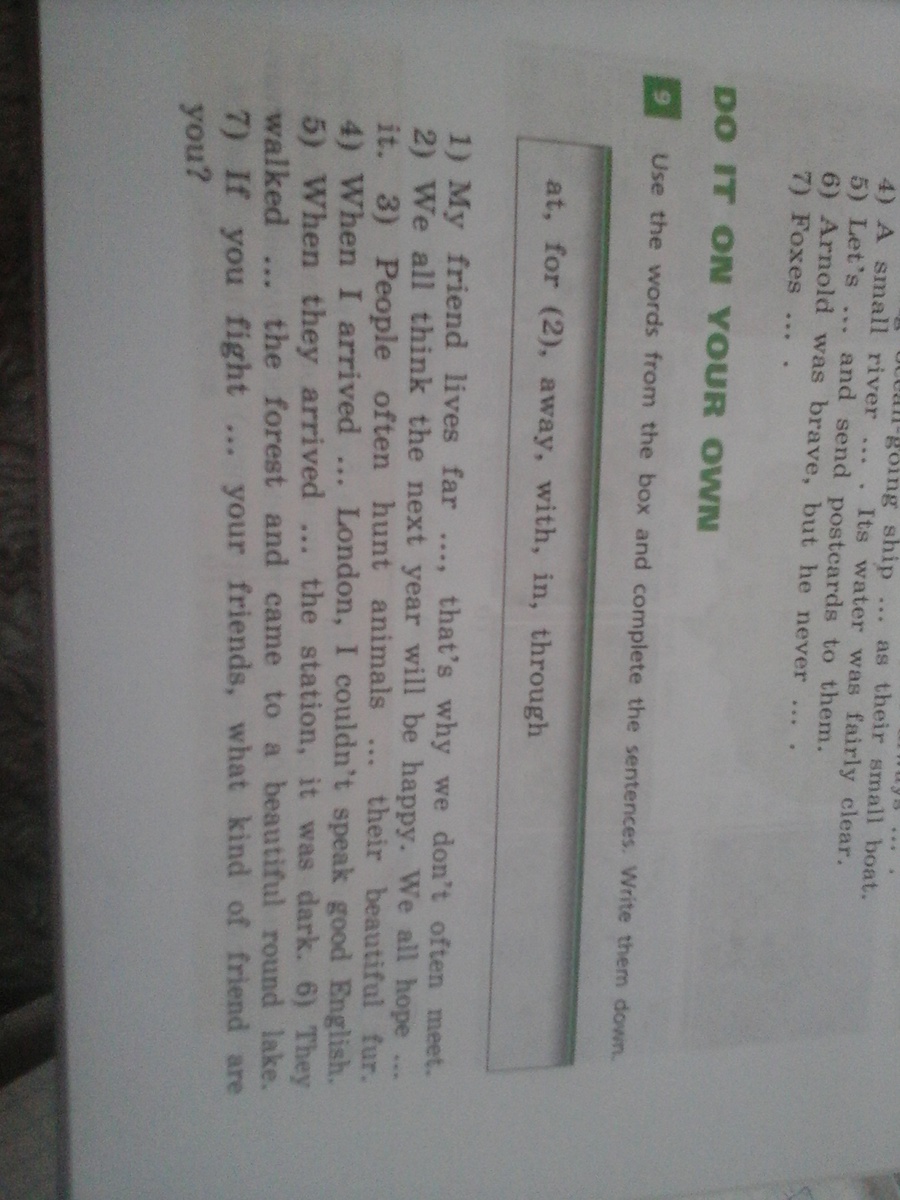 away 2.at 3. it 4. in 5.for 6. for 7.with