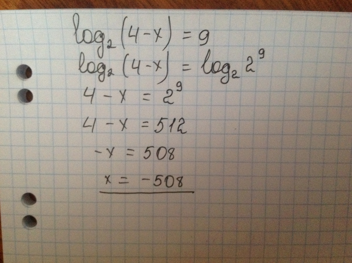 log₂(4–x)=log₂2⁹