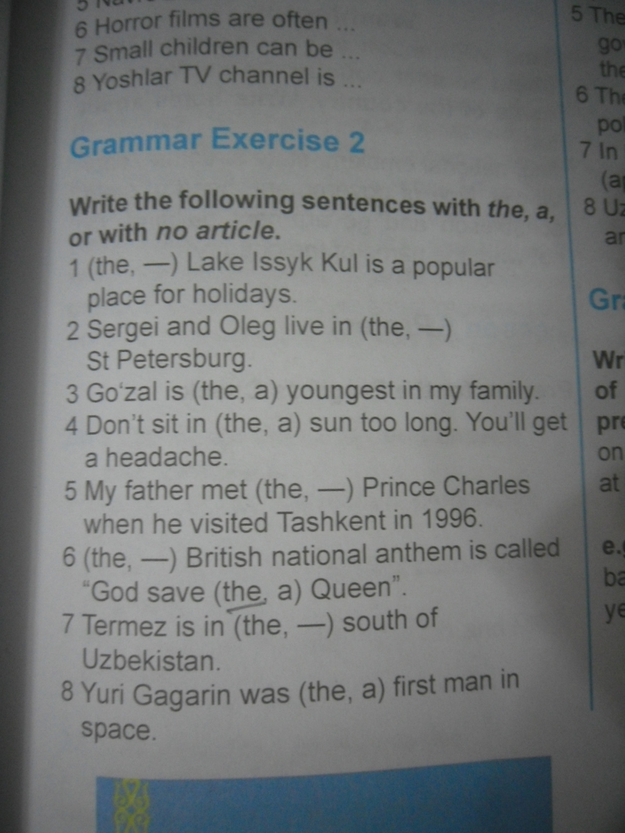 1 . (-) 2. (-) 3 the 4. the 5. (-) 6 the ; the 7 the 8 the