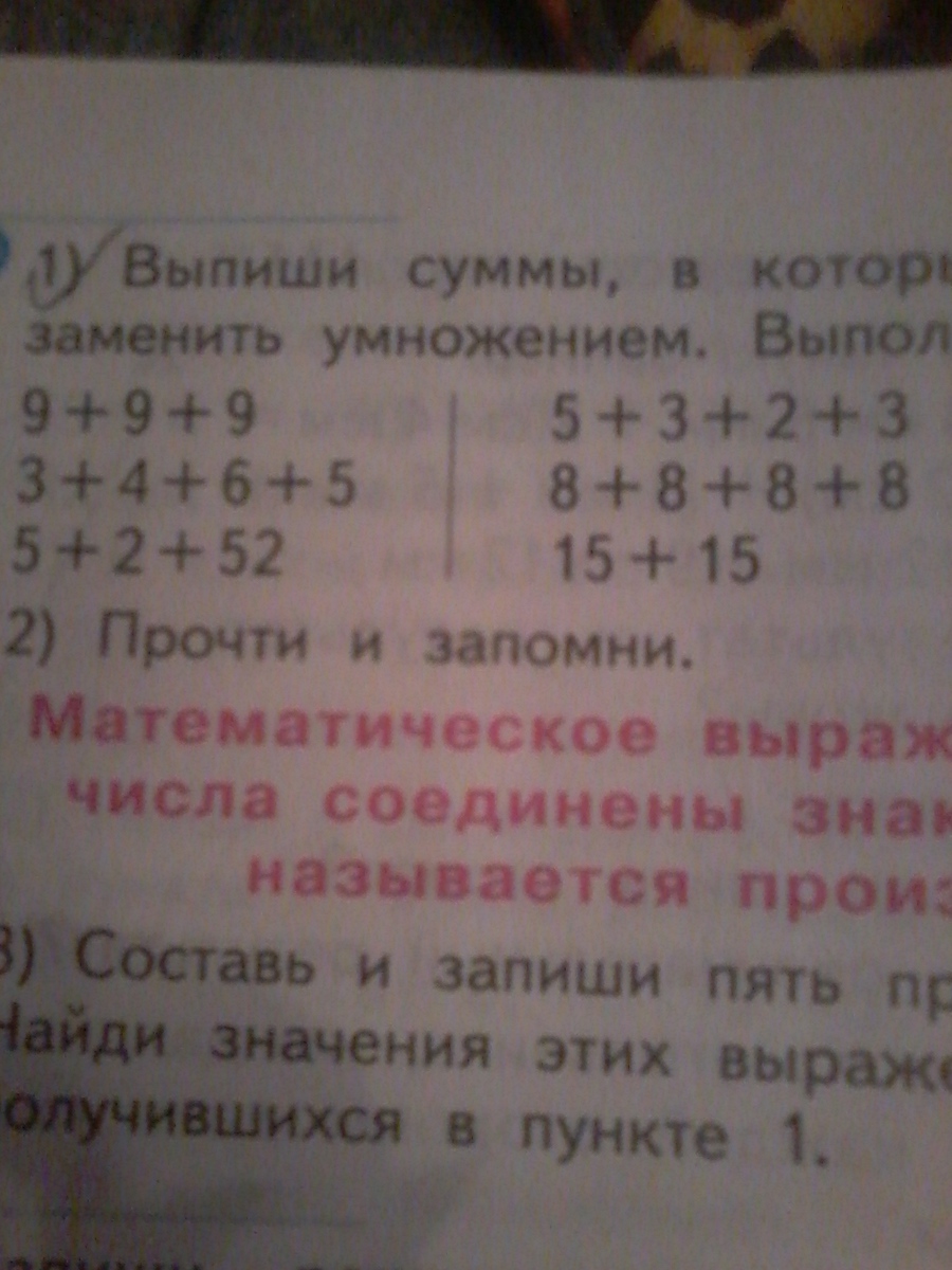 Выпиши суммы в которых сложение можно заменить умножением выполнить замену