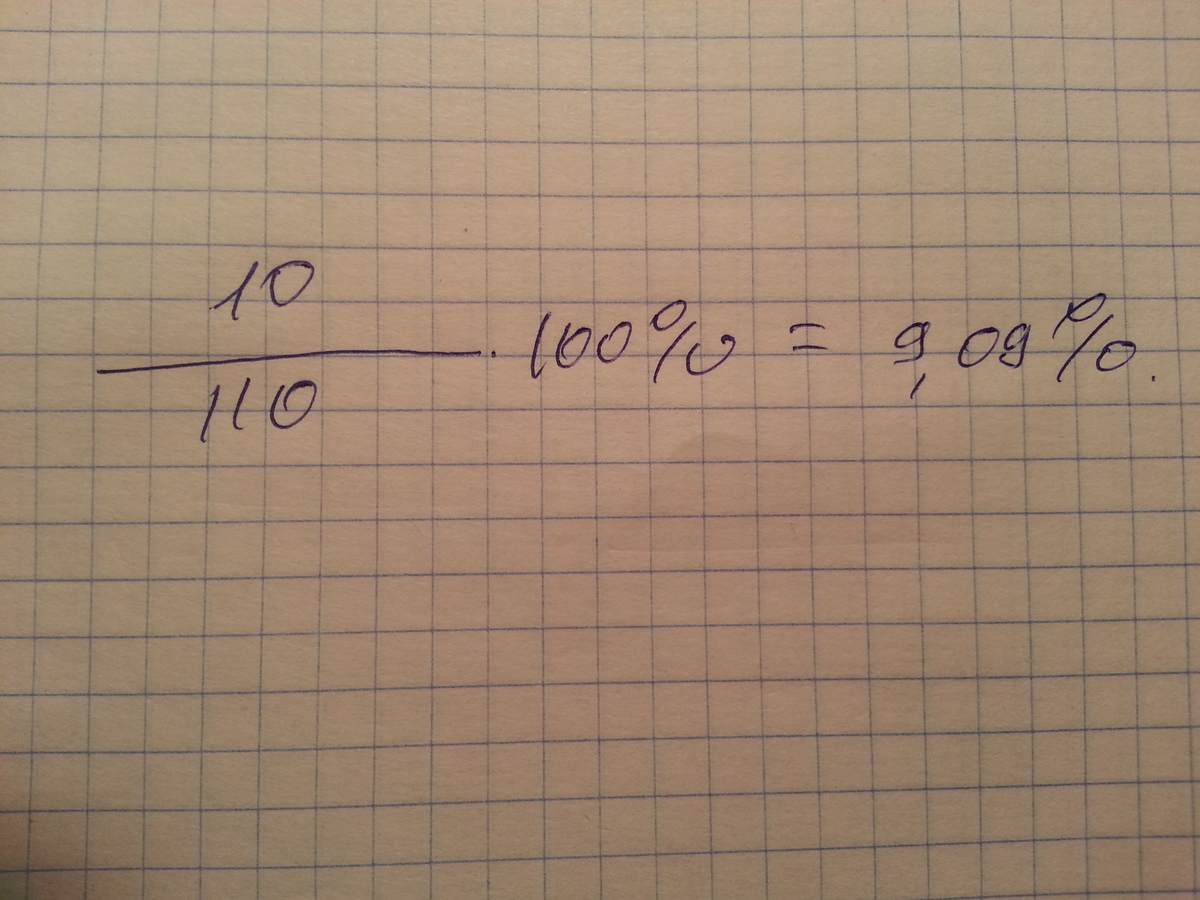 1)9,09% 2)10,00% 3)11,11% г)13,26%