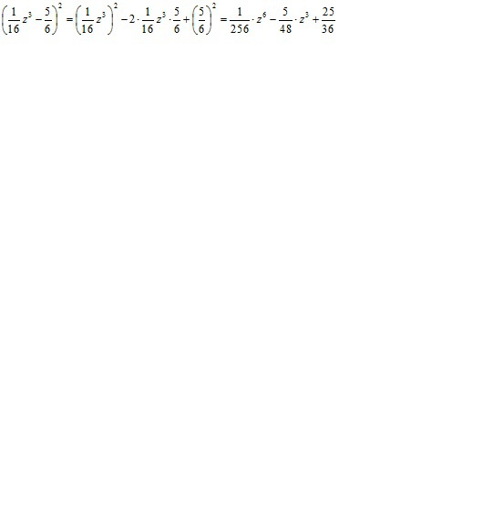 ((1/16)*z³-5/6)²=((1/16)*z³)²-2*(1/16)*z³ *(5/6)+(5/6)²=(1/256)*z⁶-(5/48)*z³+25/36