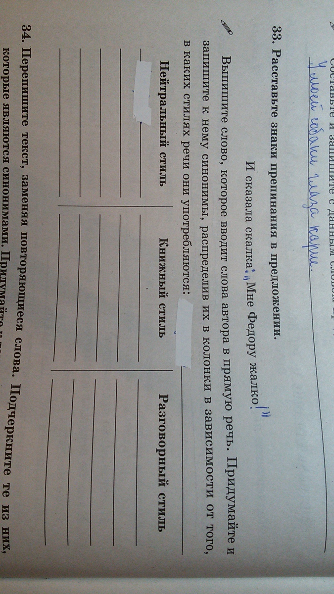И с казала скалка: ''Мне Федору жалко!'' задание: Выпишите слово, которое вводит слова автора в прямую речь. Придумайте и запишите к нему синонимы распределив их в колонки в зависимости от того, в каких стилях речи они употребляются:______________ НЕЙТРАЛЬНЫЙ СТИЛЬ ______________________________________________________________ КНИЖНЫЙ СТИЛЬ ____________________________________________________________ РАЗГОВОРНЫЙ СТИЛЬ ________________________________________ что это такое нейтральный, книжный, разговорный? и что и как надо писать?