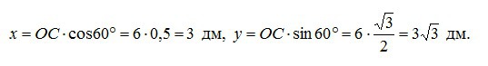 Луч ОС образует с положительной полуосью абсцисс угол 60°. Найдите координаты точки С, если ОС = 6 дм