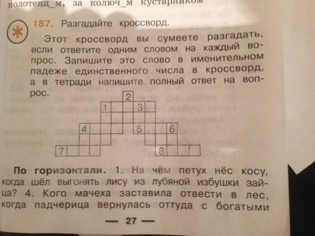 Этот кроссворд вы сумеете разгадать , если ответите одним словом на каждый вопрос.Запишите это слово в именительном падеже единственного числа в кроссворд,а в тетради напишите полный ответ на вопрос.