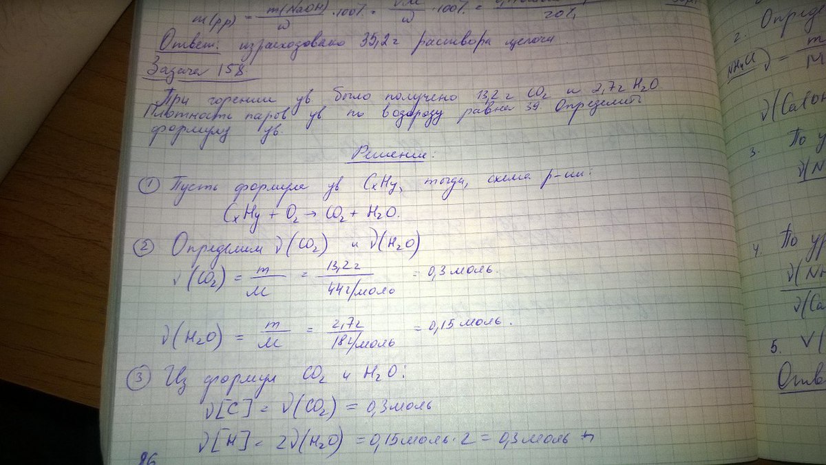 1. При горении углеводорода было получено 13,2 г углекислого газа и 2,7 г воды. Плотность паров этого углеводорода воздуху равна 39. Определила молекулярную формулу углеводорода.