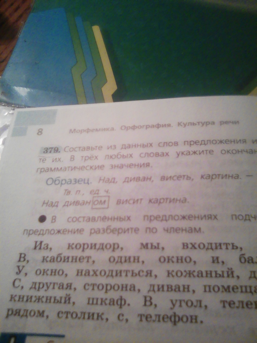 составить предложения со словами: над, диван, висеть, картина. Образец : Над диваном висит картина.
