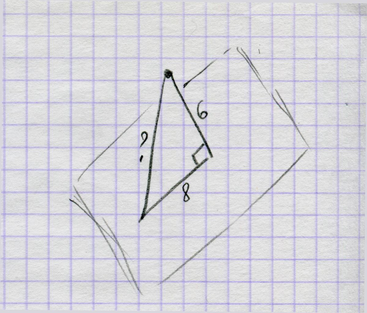 или: т.к. треугольник прямоугольный, используем теорему Пифагора