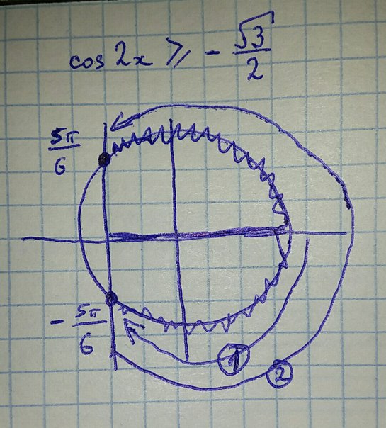 Так на окружности я представил cosx>=a, а после алгебраическими вычислениями продолжил решение (последние две строки)
