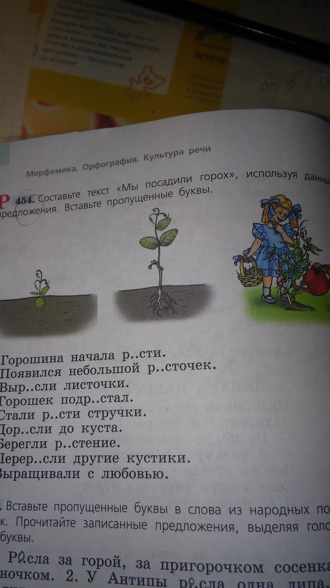 составьте текс "Мы посадили горох", используя данные ниже предожния. вставьте пропущенные буквы