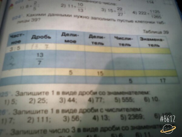 1) Частное - 13:7 Делимое 13 Делитель 7 Числитель 13 Знаменатель 7