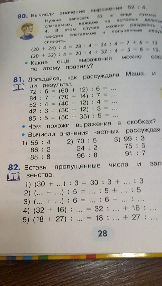 52 : 4 = (40+12) : 4
