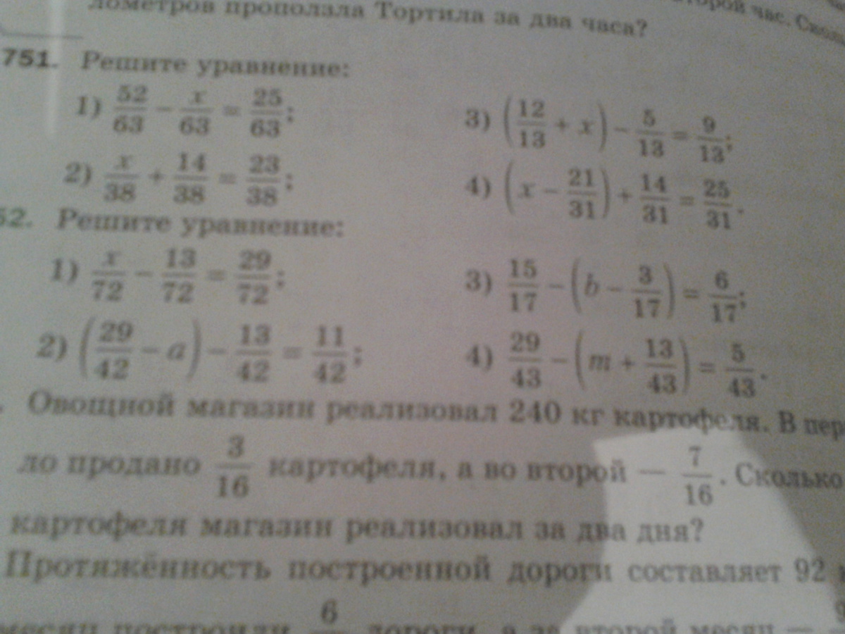 решите уравнения х/72-13/72=29/7. (29/42-а)-13/42=11/42. номер 752