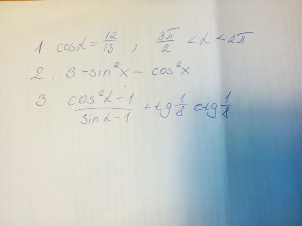 3) (cos²α - 1) / (sinα - 1) + tg(1/8)*ctg(1/8) = - (1 - cos²α)/(sinα - 1) + 1 =
