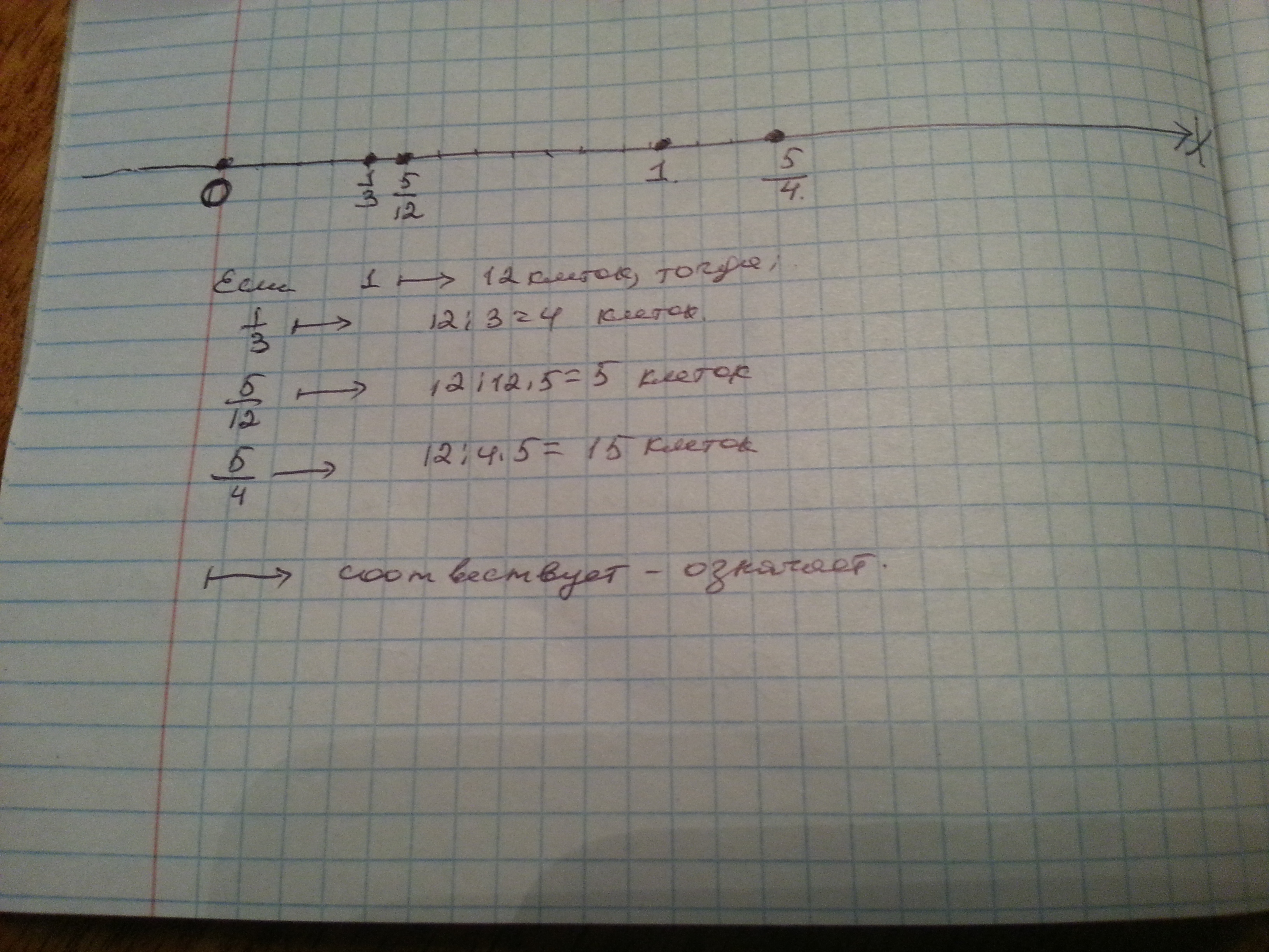 начертите на координатную прямую взяв за единичный отрезок 12 клеток отметь на координатой прямой дроби 1/3, 5/12, 5/4. Срочно