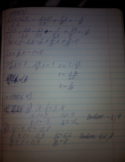 3,5x/0,5 + 0,5/0,5 – 2x/0,5 – 1/0,5 +5x/7 = -x/7