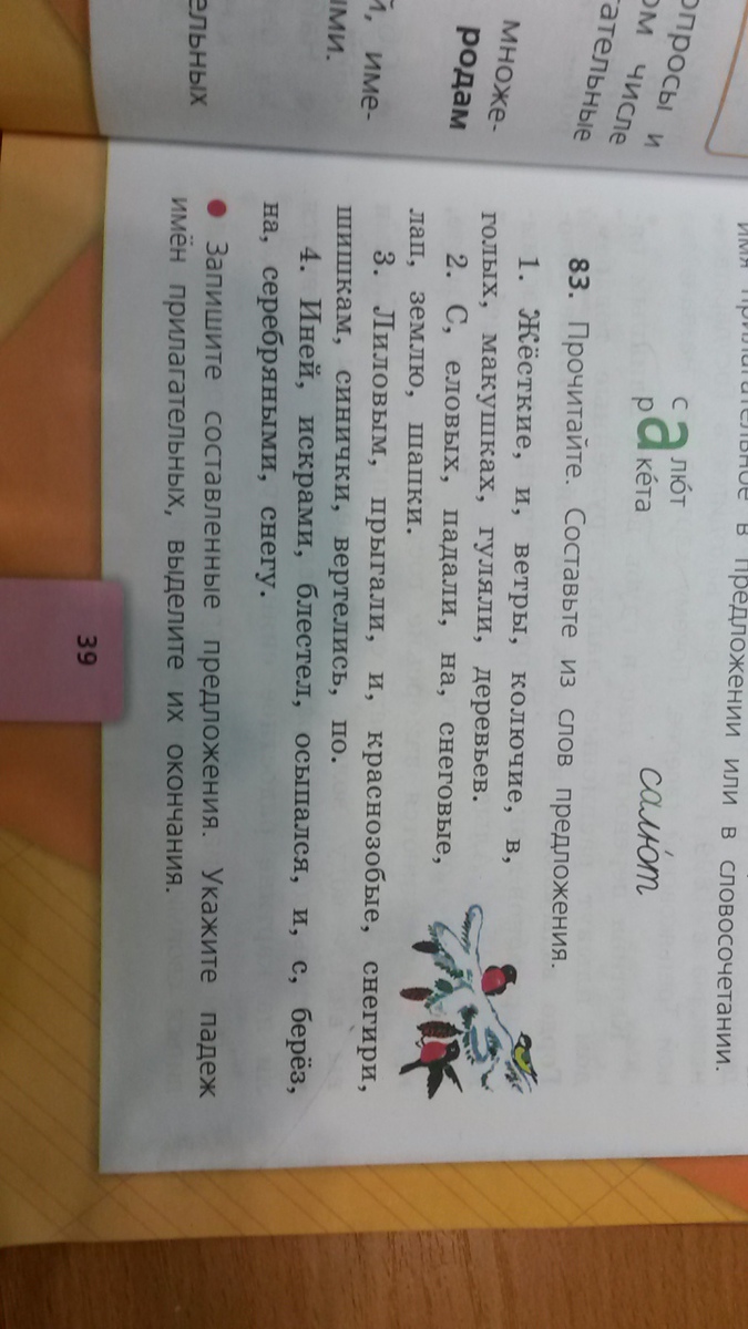 По лиловым шишкам прыгали краснозобые снегири и вертелись синички.