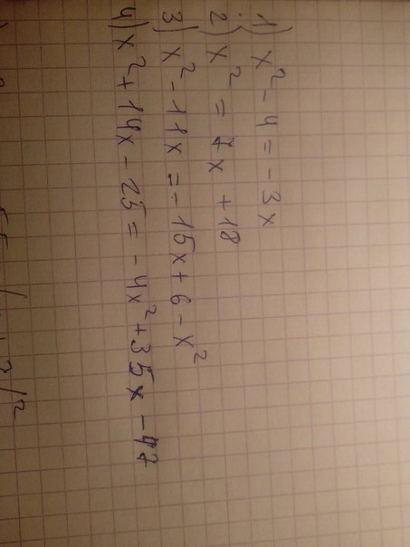 4) х^2 + 14х -25 = -4х^2 +35х - 47