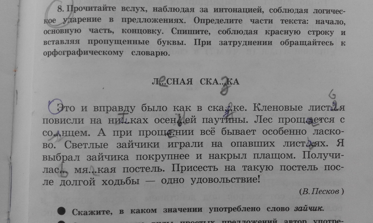 Если ты про слово "зайчик", то просто нужно написать в каком значении оно употребляется ( в переносном или нет)