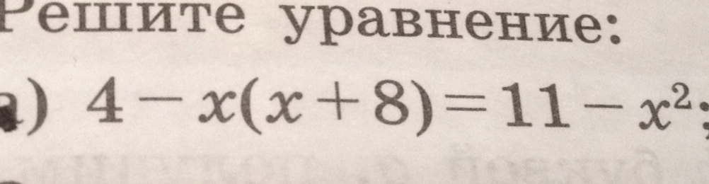 Решите уравнение: 1) 4—х(х+8)=11-х2;
