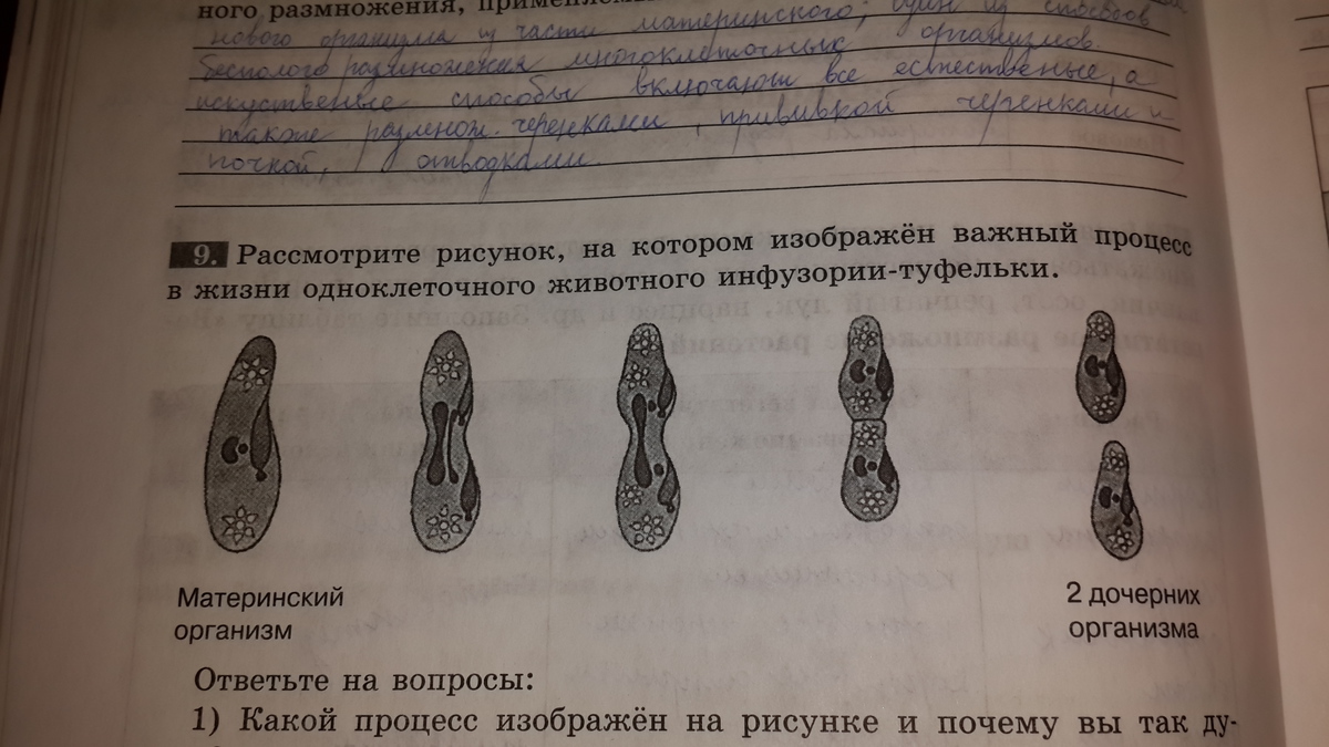 рассмотрите рисунок на котором изображён важный процесс в жизни одноклеточного животного инфузории туфельки.