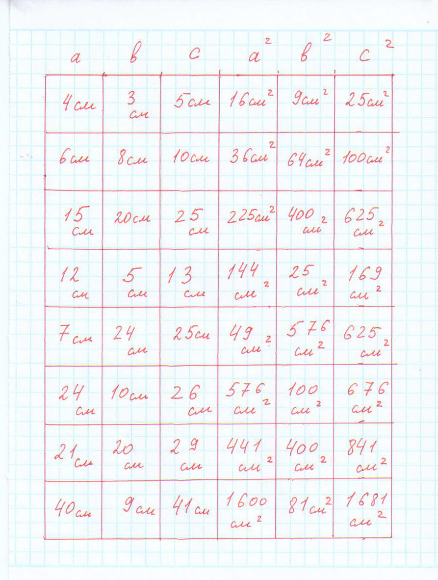7 см 24 см 25 см 49 см2 576 см2 625 см2