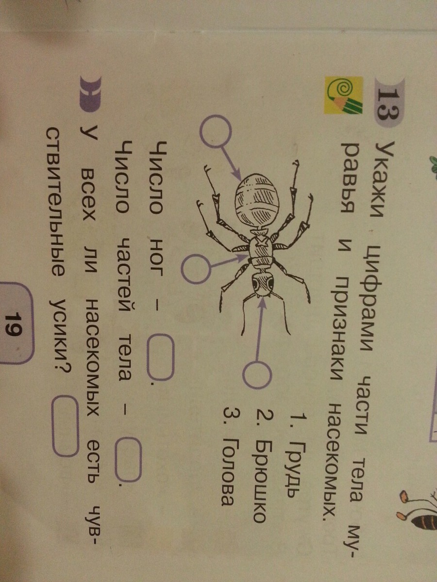 частей 3, грудь по середине брюшко самое последнее а голова это где глазки