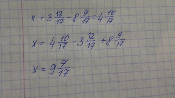 (х +3 целых 12 семнадцытых ) -8 целых девять семнадцытых=4 целых 10 семнадцытых решите уравнение