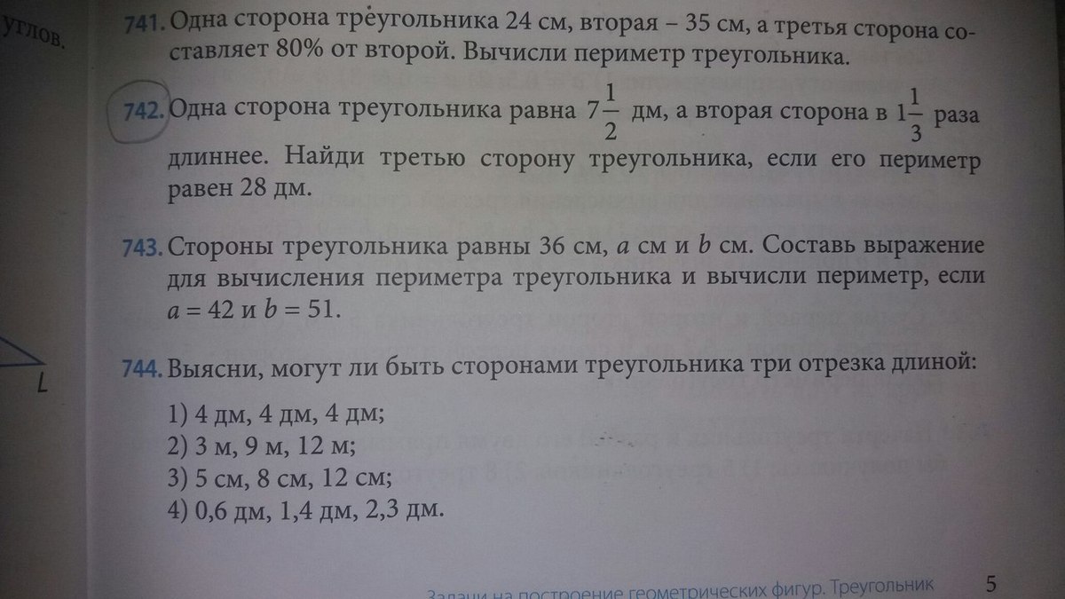 c = P - a - b = 28 - 7,5 - 10 = 10,5 дм