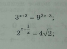 1) 3^(x+2)=9^(2x-3)