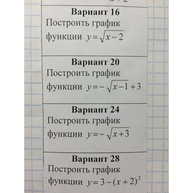 Числа в квадрате = 0, 1, 4, 9, 16 - для построения графиков