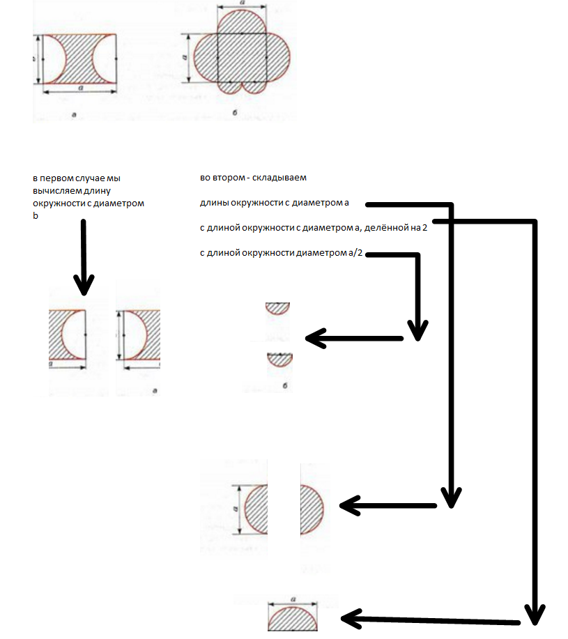поправка: вместо "с длиной окружности с диаметром a, делённой на 2" нужно "с длиной окружности с диаметром a, получившийся результат делим на 2"