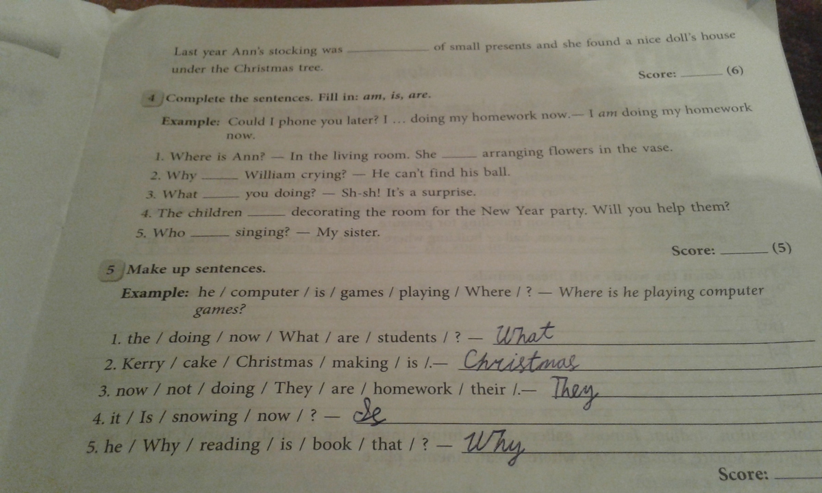 a Christmas cake. 3) They are not doing their homework. 4) Is it snowing now?