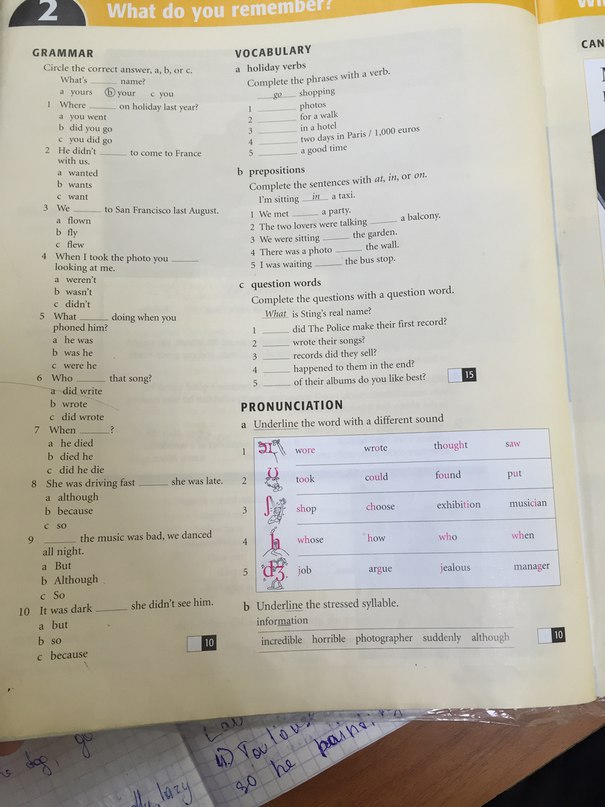 Vocabulary. A 1. take 2. go 3. check 4. spend 5. have