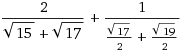 ((2/(корень из 19 + корень из 17)) + (2/(корень из 17 + корень из 15)) + корень из 15) * корень из 19