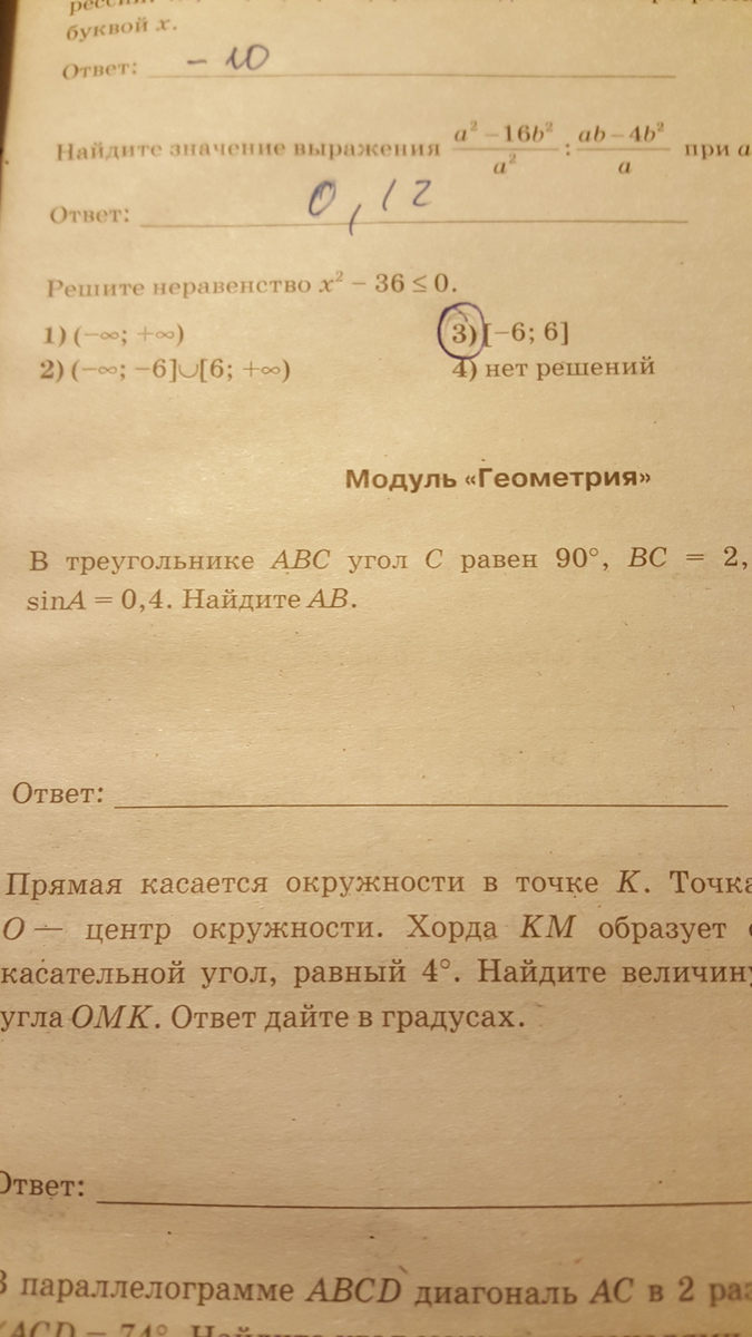 гипотенуза есть частное от деленифя противолежащего катета на синус. 2/0,4 = 5