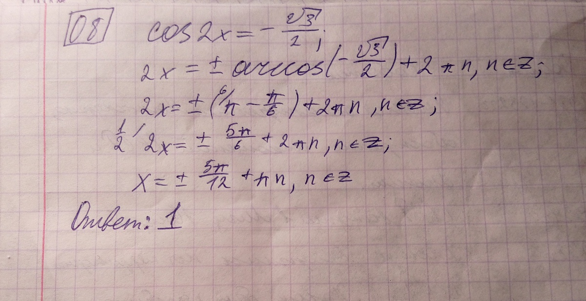 Вот №08 ) Там всего лишь нужно было посчитать по формуле X = ±arccos a + 2pn .