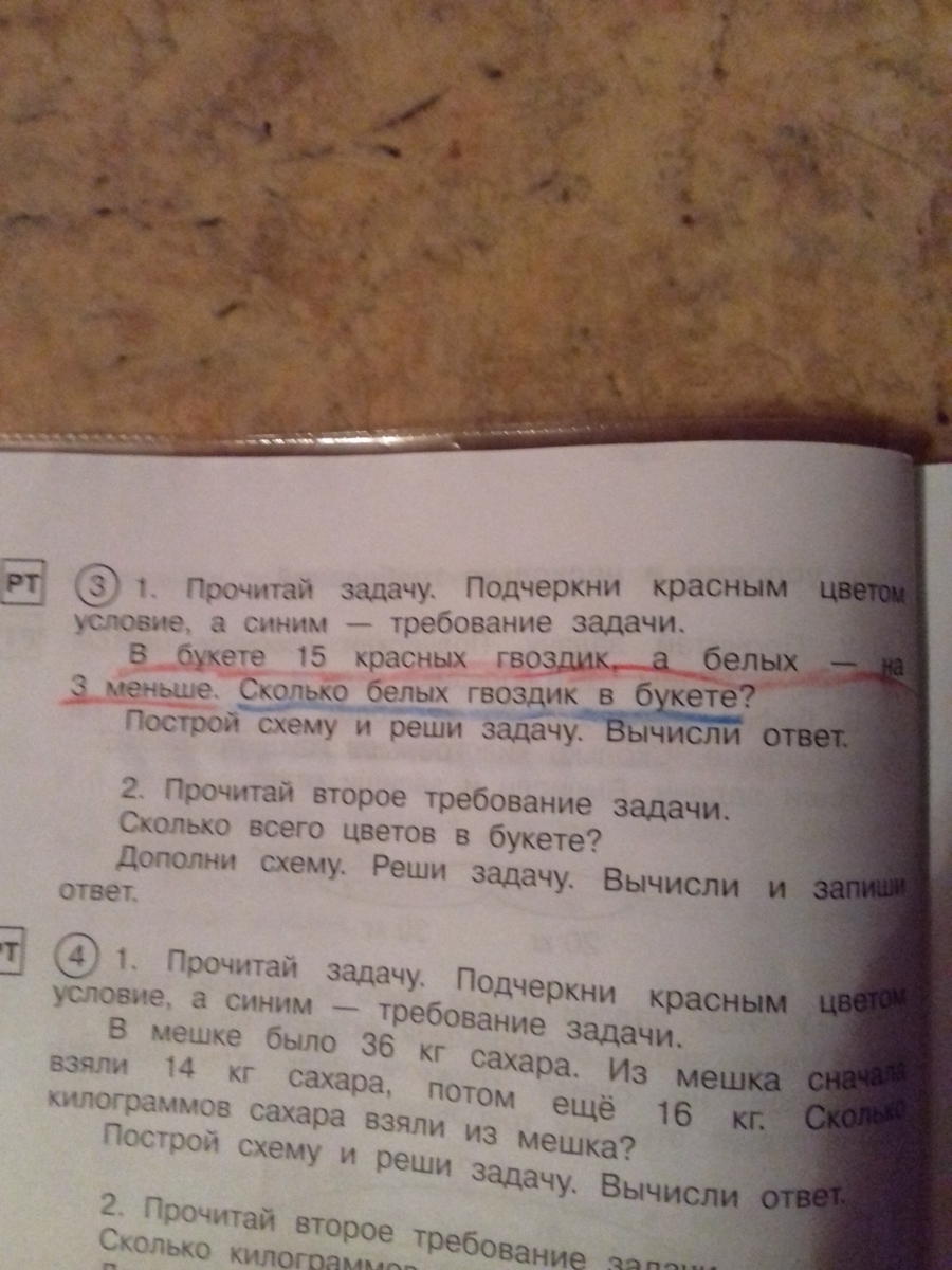 раз красных гвоздик 15, а белых на 3 меньше (12шт.) то 15+12=27 цветков в букете