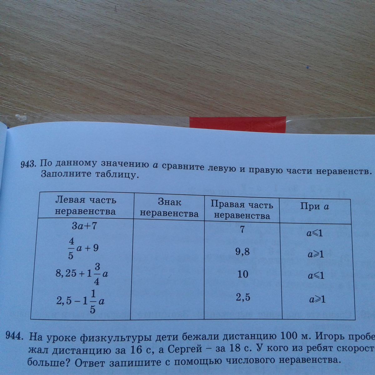 по данному значению а Сравните левую и правую части неравенства Заполните таблицу номер 943 из решите